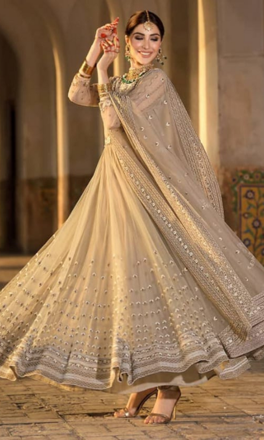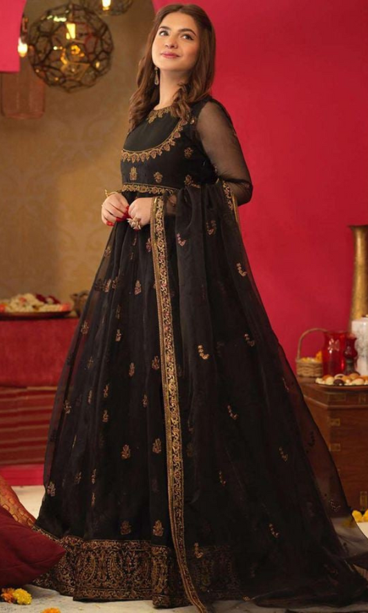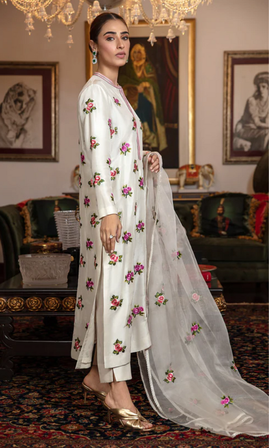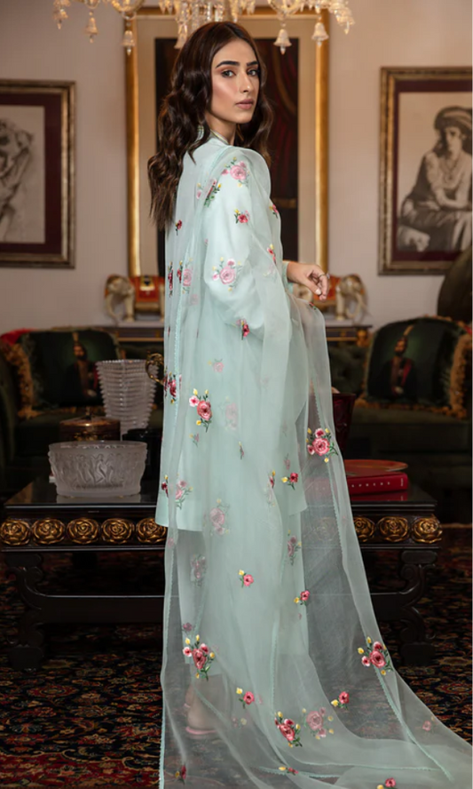 Nadia Farooqi - 3PC (Unstitched) Organza Embroidered Shirt With Organza Embroidered Dupatta - GSF055