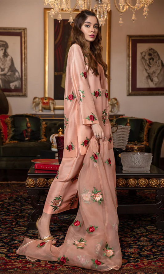 Peraan - 3PC (Unstitched) Embroidered Premium Raw Silk Frock - PR55