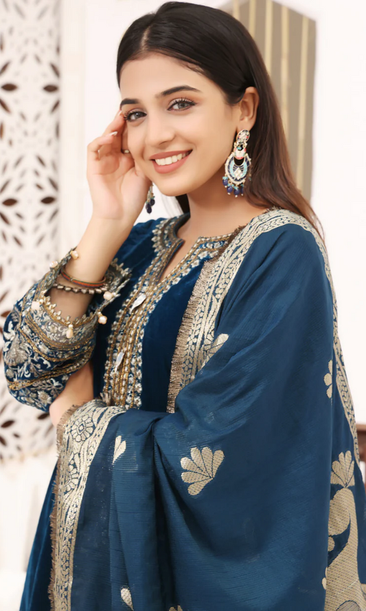 Khuda Baksh - 3PC (Unstitched) Velvet Embroidered Suit - KB001