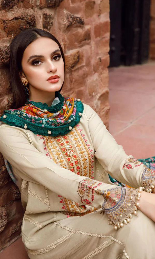 Ramsha - 3PC (Unstitched) Embroidered Shirt With Heavy Embroidered Dhanak Shawl - RM062