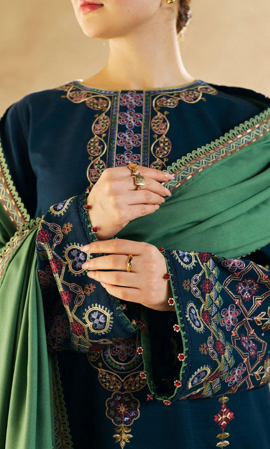 Izel - 3PC (Unstitched) Embroidered Dhanak Suit - ZL071