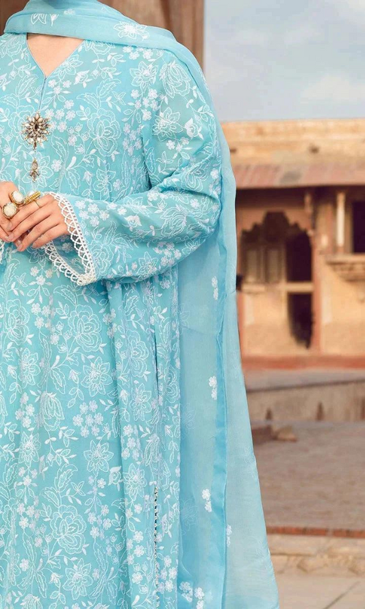 Azure -3PC (Unstitched) Embroidered Lawn Suit - AZ7172