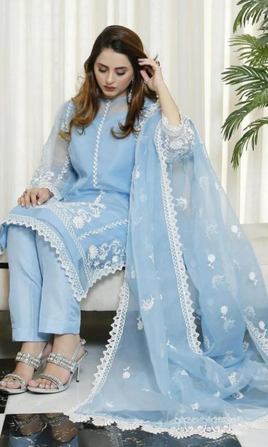 NISA - 3PC (Unstitched) Dhanak Embroidered Shirt With Embroidered Organza Dupatta - GKA01