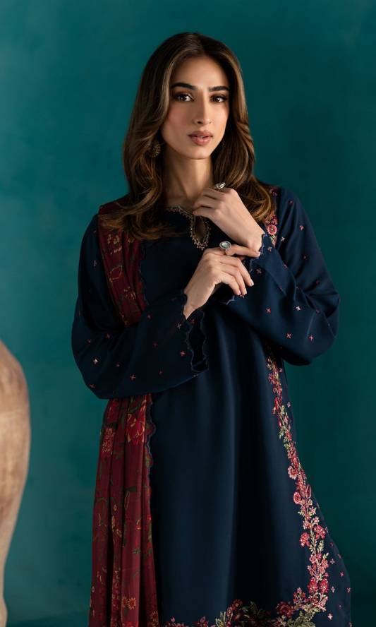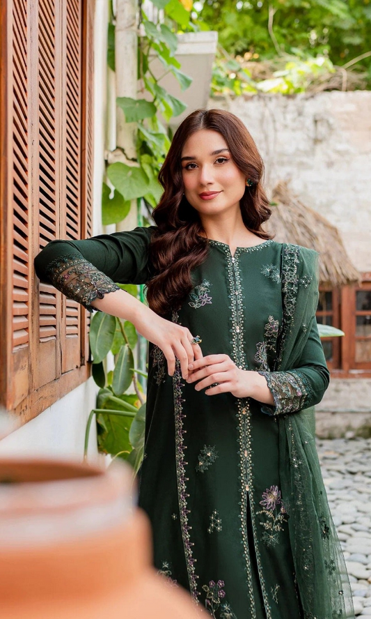 Hadia Eman - 3PC (Unstitched) 9000 Micro Velvet Embroidered Suit - HE052