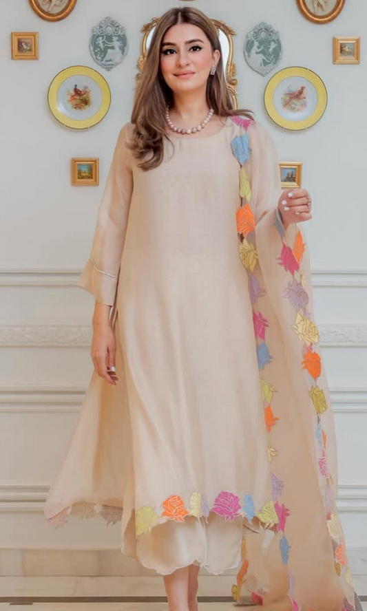 Nadia Farooqi - 3PC (Unstitched) Organza Embroidered Shirt With Organza Embroidered Dupatta - GSF055