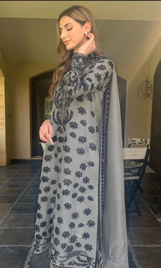 Baroque - 3PC (Unstitched) Dhanak Heavy Embroidered Suit - GKA05