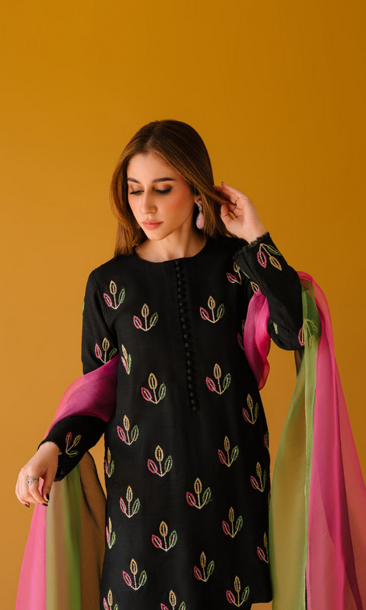 Peraan - 3PC (Unstitched) Embroidered Premium Raw Silk Frock - PR55