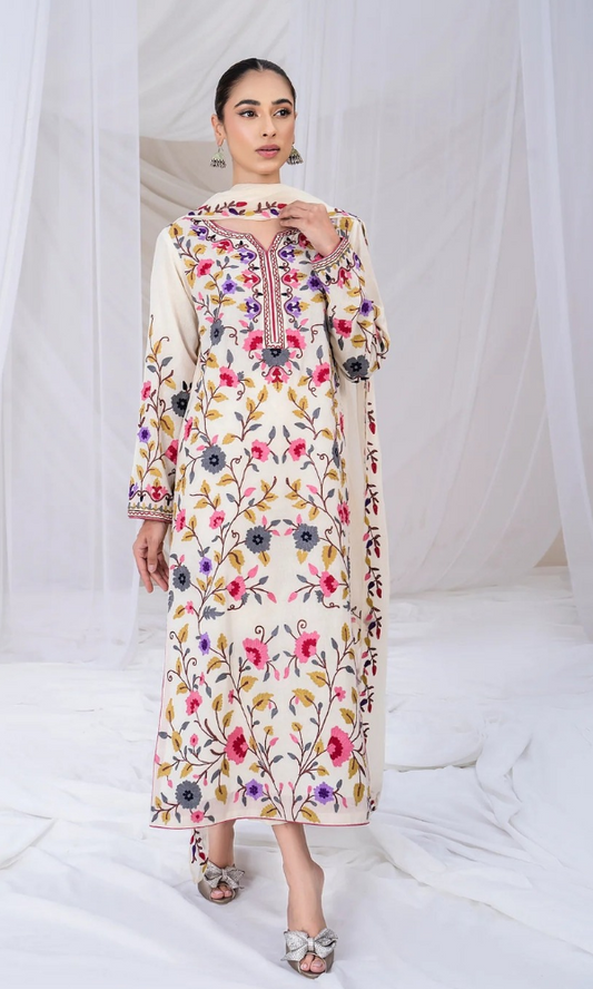 Nadia Farooqi - 3PC (Unstitched) Dhanak Embroidered Suit - GIR600