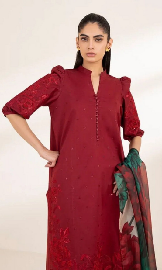 Ruby - 3PC (Unstitched) Embroidered Lawn Suit - RB001